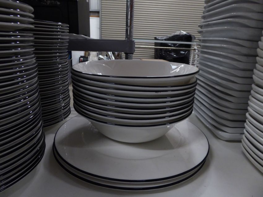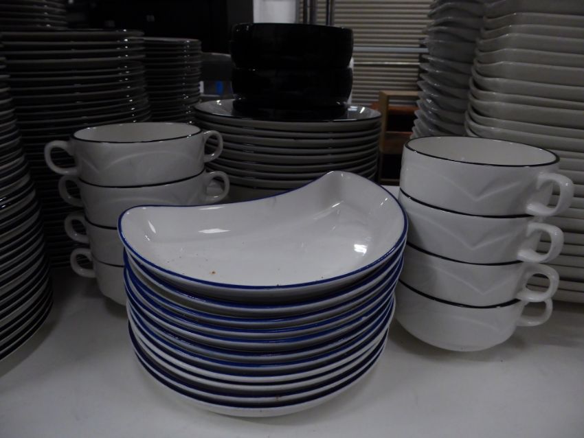 *selection of white and blue crockery - soup bowls/'moon' plates/bowls/plates x 30+ items