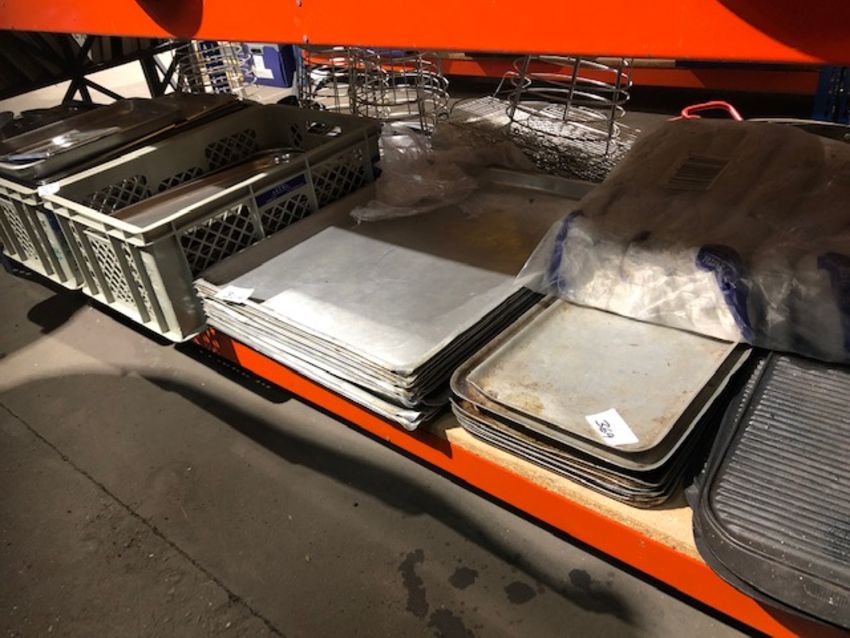 * double shelf of paella pans - skillets- trays etc Located at Grantham, NG32 2AG