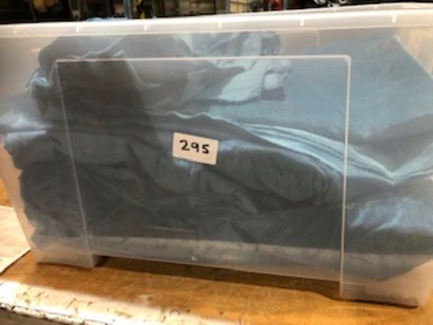 * 3 x very heavy aquamarine velour table cloths 136in  x 136 in storage box Located at Grantham, NG32 2AG