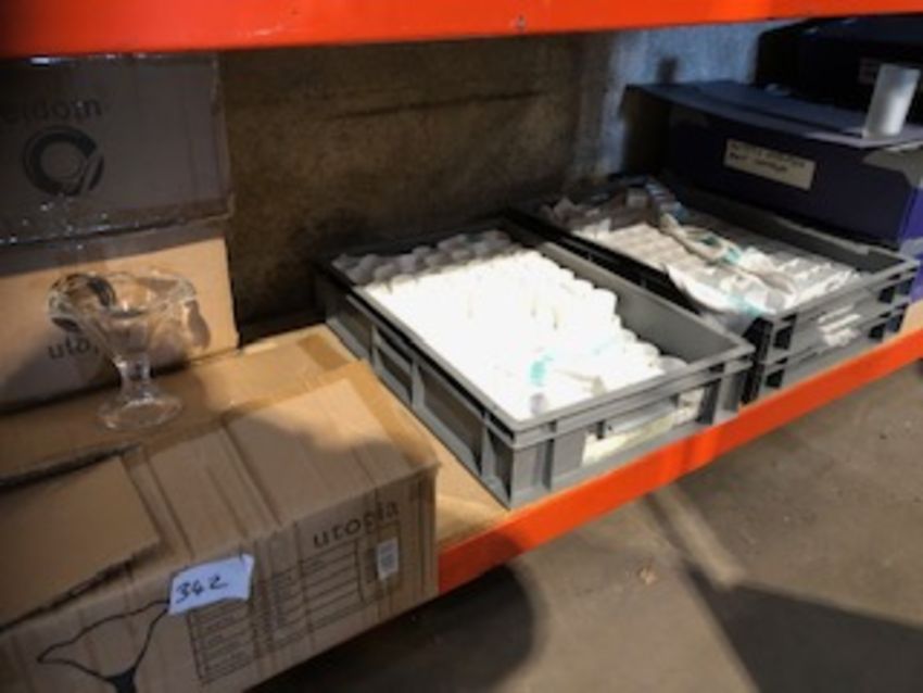 * contents of the shelf sundae glasses - loads of ceramic milk jugs and ceramic pots - battery candle lights etc Located at Grantham, NG32 2AG