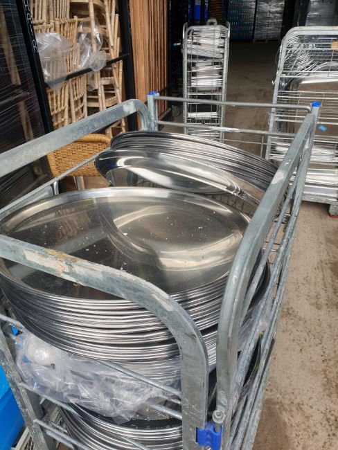Over 500 Lots on New and Used Catering Equipment and Marquee Furnishings to include Banqueting Tables, Trestle Tables, Poseur Tables, Aluminium Outdoor Chairs, 1000 plus Stackable Chairs, Rattan Furniture, Royal Doulton and Other Crockery, Kings and Henley Pattern Cutlery, 1000s of Glasses and Glassware, Brass Buckets, Wine Coolers Wedgewood and Other Cups and Saucers, Tea Pots and Cafetières, Candelabras,  None Slip Trays and Butlers Trays, Bain Marie Inserts and Gastro Trays LPG and Electric Catering Equipment, Pass-thru Dishwashers, Bain Maries and Hot Cupboards, Water Boilers, Stainless Steel Tables and Sinks, Etc…