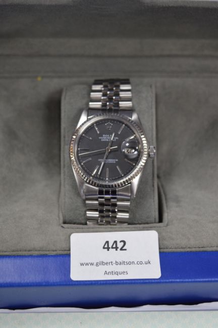 Rolex Oyster Perpetual Date Adjust Superlative Chronometer Gents Wristwatch with Original Case and Service Documentation