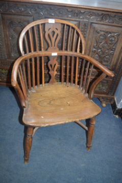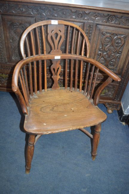 Victorian Yew Windsor Chair with Crinoline Stretcher