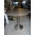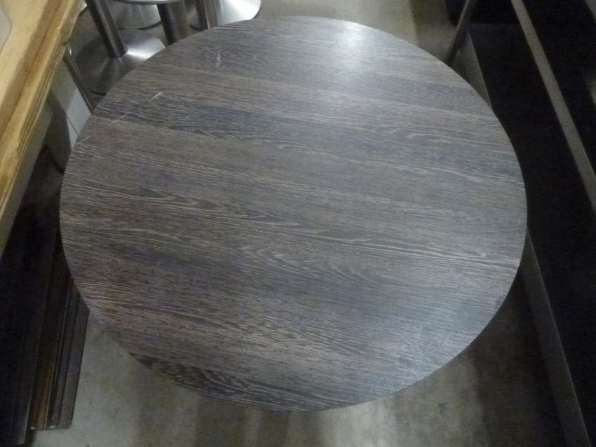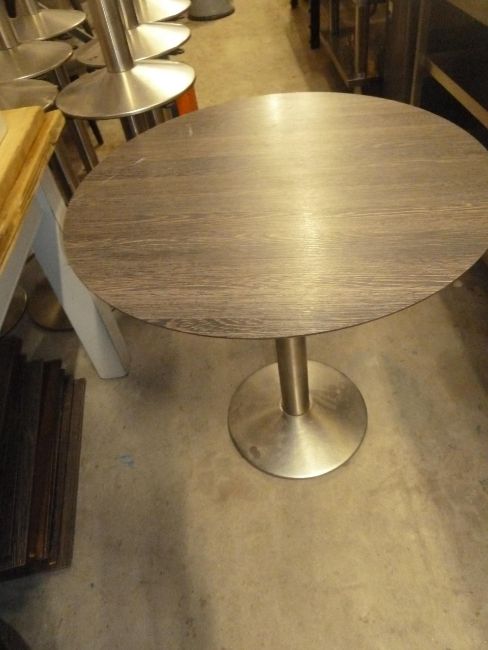 * 3 x round dark wooden tables with S/S pedestal bases. 770 diameter x 760h