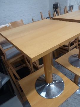 * 4 x square wooden topped tables with pedestal bases with wooden vaneer pedestal bases. 610w x 610d x 750h