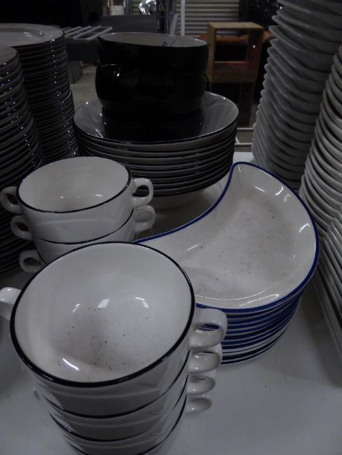 *selection of white and blue crockery - soup bowls/'moon' plates/bowls/plates x 30+ items