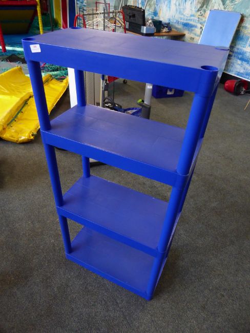 *blue plastic shelf unit. 600w x 300d x 1300h