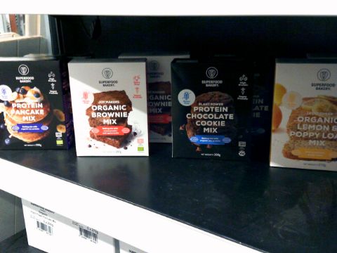 superfood bakery selection x 8 boxes. 2 x Pancake mix, 2 x brownie mix, 2 x choc cookie mix, 2 x lemon and poppy seed loaf mix