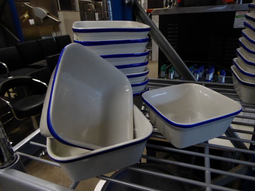 * 10 x small square pie dishes with blue rim