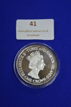 Turks & Caicos 1 Crown Sterling Silver Coin Royal Wedding Anniversary 1991