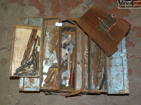 Concertina Toolbox Containing Spanners and Drill Bits