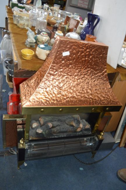 Retro Style Coal Effect Fire with Beaten Copper Hood