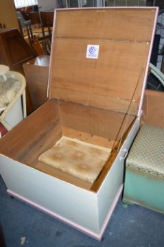 Pink & White painted Storage Box on Wheels