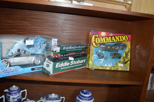 Maisto BMW 645CI plus an Eddie Stobart Scania Curtain Sider, and a Commando Matchbox Set