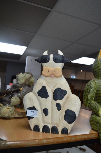 Painted Carved Wooden Cow