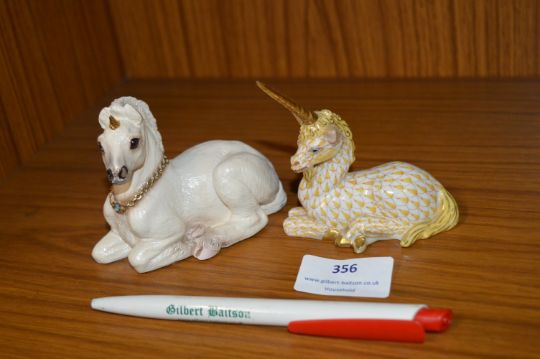 Enameled Unicorn by Hungarian Artists plus a Resin Unicorn Figure