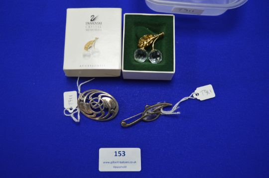 Two Sterling Silver Brooches and Swarovski Crystal Cherry Brooch