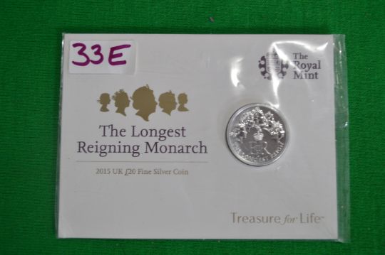 Royal Mint 2015 UK £20 Longest Reigning Monarch Fine Silver Coin