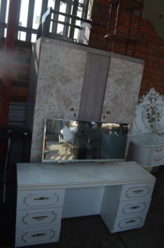 Vintage Wardrobe, White & Gilt Dressing Table plus Side Tables