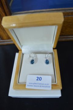 *18k White Gold, Blue Topaz & Diamond Earrings