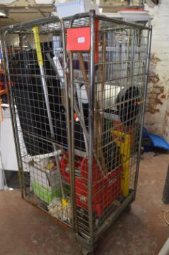 Cage Lot Including Cleaning Products, Dustpan & Brushes, Bins, Mop Heads, Scrubbing Brushes, etc.