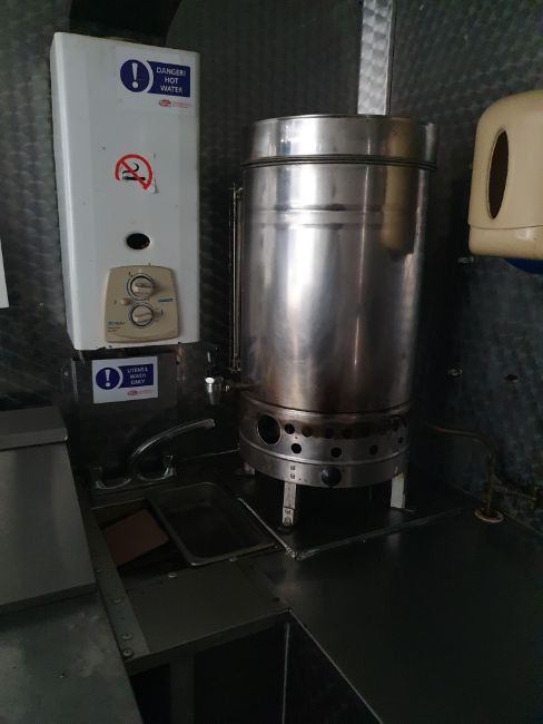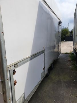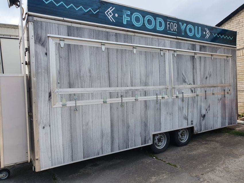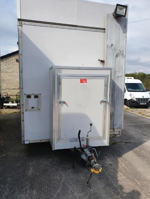 20ft Twin Axle Fish and chip trailer containing: 3 pan range, 4ft griddle, pop fridge, 2 x water boilers, 4x bain Marie's, pizza fridge - Located in Sheffield full details will be given to successful bidder