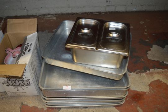 Seven Aluminium Cooking Trays, and a Twin Bain Marie Pot