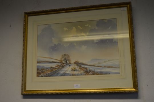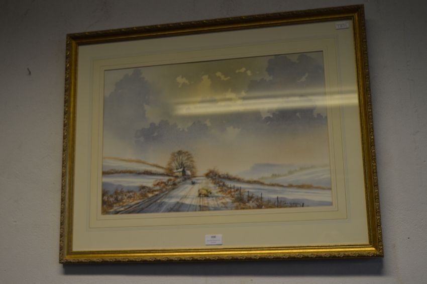 Gilt Framed Watercolour Winter Scape Moorland Scene by I. Gillibrand