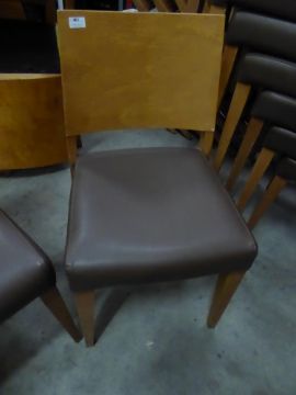 * 12 x wooden chairs with coloured seats - lime green/pink/brown