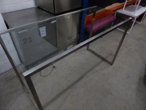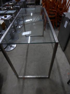 * glass top table with brushed steel frame. 1500w x 650d x 920h