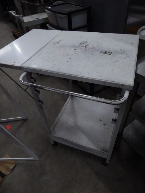 * white trolley on castors with pop up side ideal for clothing store or similar