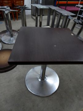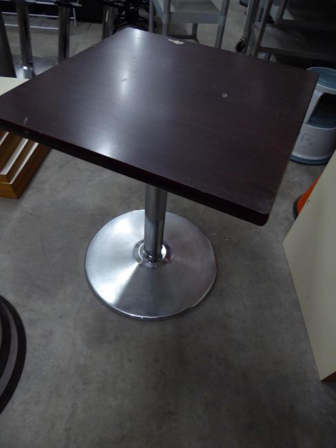 * 6 x square tables with chrome bases and dark wooden tops. 650w x 650d x 750h
