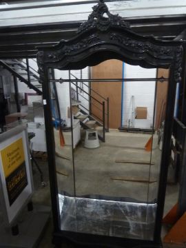 * black ornate open backed wardrobe - with mirrored internal surfaces and hanging rail