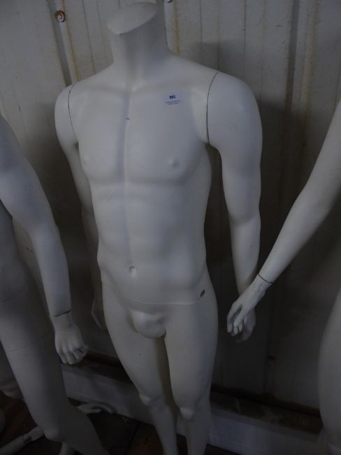 * white male mannequin - no head - glass stand