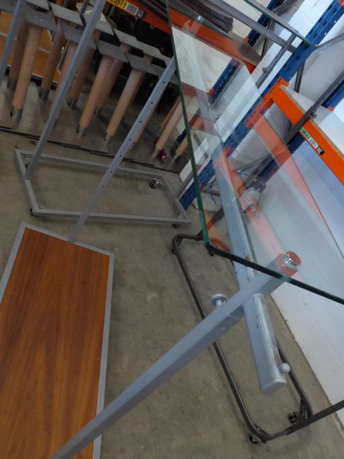 * clothes rail on castors - adjustable height with under shelf and glass over shelf