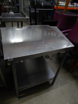 * S/S prep bench with undershelf - right side on angle - 2 cut outs to rear edge. 760-990w x 740d x 920h