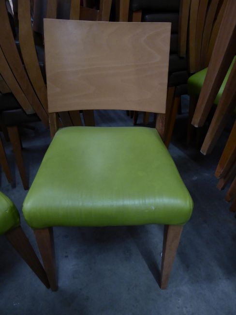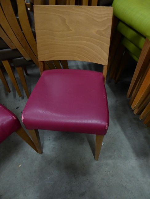 * 14 x wooden chairs with coloured seats - lime green/pink/brown