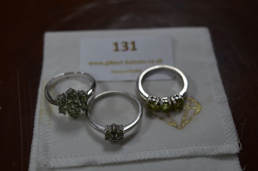 Three Gemphoria 925 Sterling Silver Earrings Rings with Green Gemstones