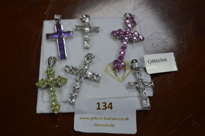 Six Gemphoria Sterling Silver Crucifixes with Assorted Gemstones