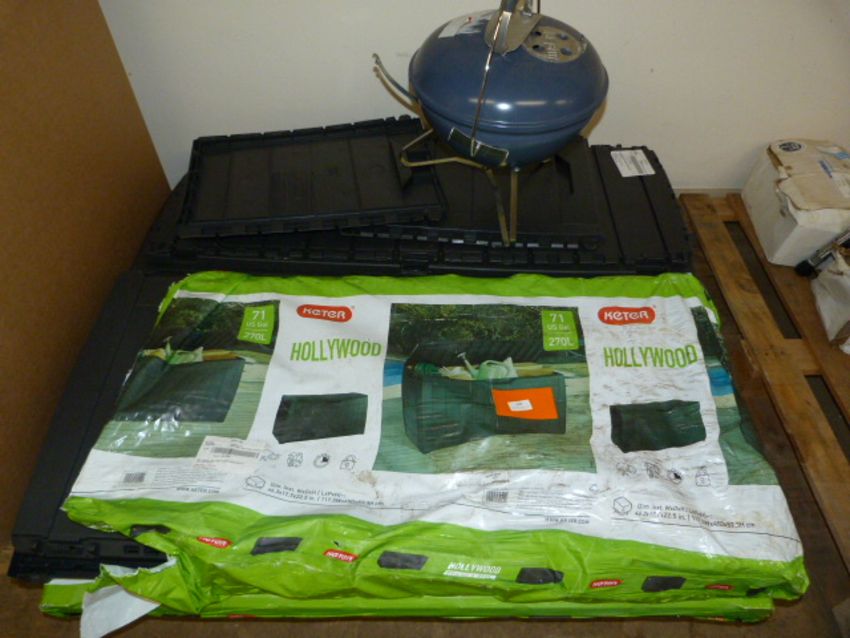 *Pallet of Salvage; Two Boxes (117.5cm x 45cm deep x 57.3cm high) and a Smokey Joe Premium Charcoal Grill