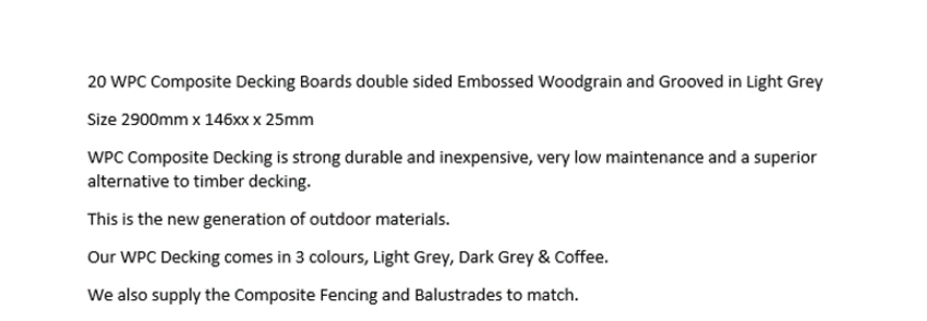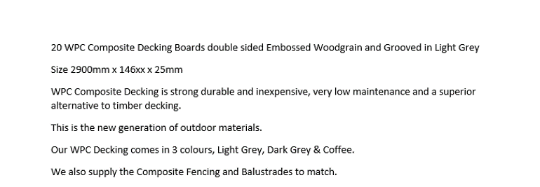 * 20 WPC Composite Light Grey Double sided Embossed Woodgrain Decking Boards 2900mm x 146mm x 25mm