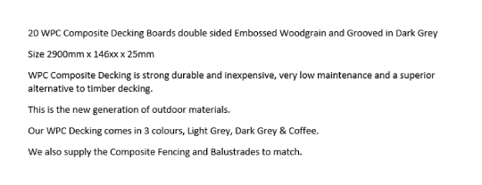 * 20 WPC Composite Dark Grey Double sided Embossed Woodgrain Decking Boards 2900mm x 146mm x 25mm