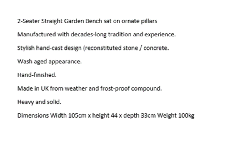 * 2 Seater Stone Garden Bench