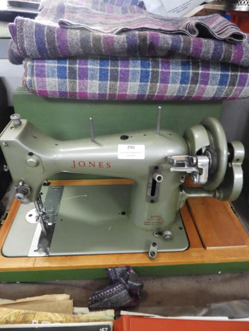 Vintage Jones Sewing Machine in Original Case plus Tweed Fabric