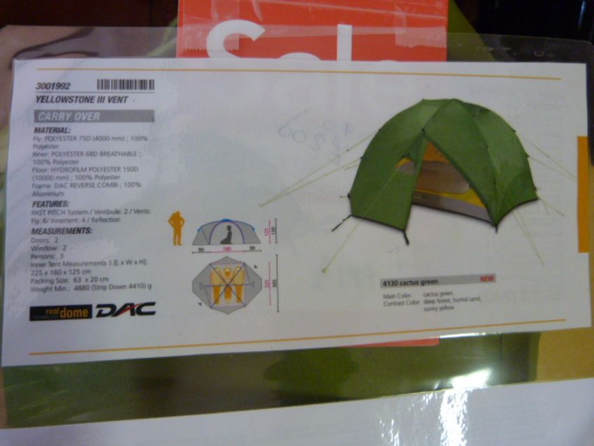 *Yellowstone 3 Tent 2 Person (Ex Display, Clear Window Now Frosted)