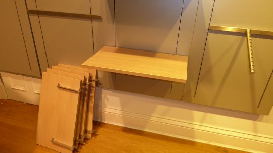 * shop fitting wall system - 4 section - with 7 shelves, hanging rail, waterfall rail and 4 x flat bars for prongs. 2800w (700w each section) x 2350h.