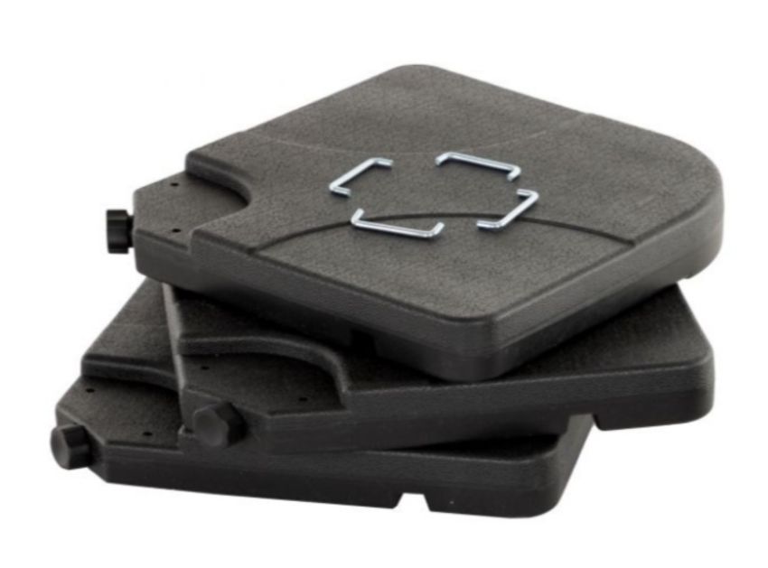 * 1x Ivory Banana Umbrella with Parasol Base. Parasol 3m Diameter. Steel Frame. 180g Polyester. Base, fill with water or sand. 4 Parts.