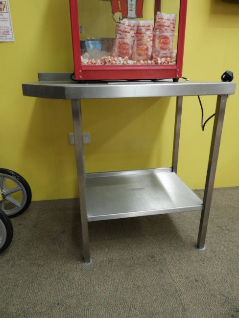 *Stainless Steel Shaped Preparation Table with Undershelf and Upstand to Rear 90x65cm