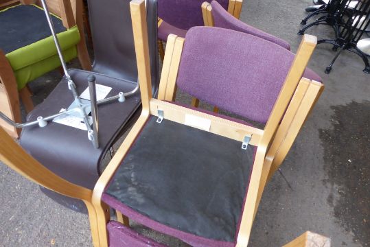 * 4 purple upholstered chairs + 2 brown leatherette stacking chairs