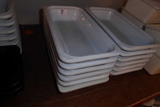 * 12 white rectangular cermic salad display pots by Emile Henry 320 x 180 x 65
